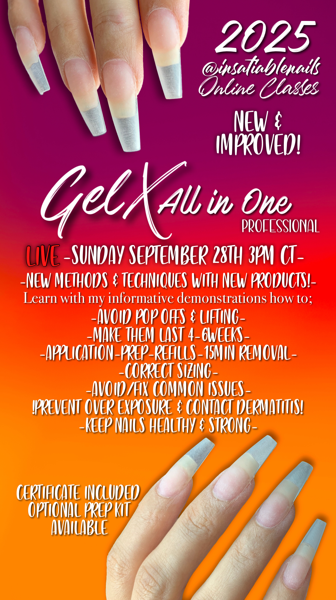My GelX All In One Class is my most popular and is all new, updated and improved. New techniques, new methods with new products! I’ll cover everything from start to finish including removal AND refill. You will have access to pre-recorded online sessions (professional use) via Instagram prior to the LIVE class, you will be able to practice and follow along (rewind/forward), take notes. Class is beginner friendly. I will show you tips, techniques, & how to fix/prevent common issues. Class demonstrations are for *Professional Use. I will also be doing a private LIVE session on September 28th that you can follow along to. I will then take time to discuss and video chat one on one with each student (optional). You will have 7days continuous access prior to September 28th beginning September 21st and then an additional 7 days to review LIVE session for a total of 14days of (one time) continuous access. If you sign up after September 21st you’ll have prior roll over days.