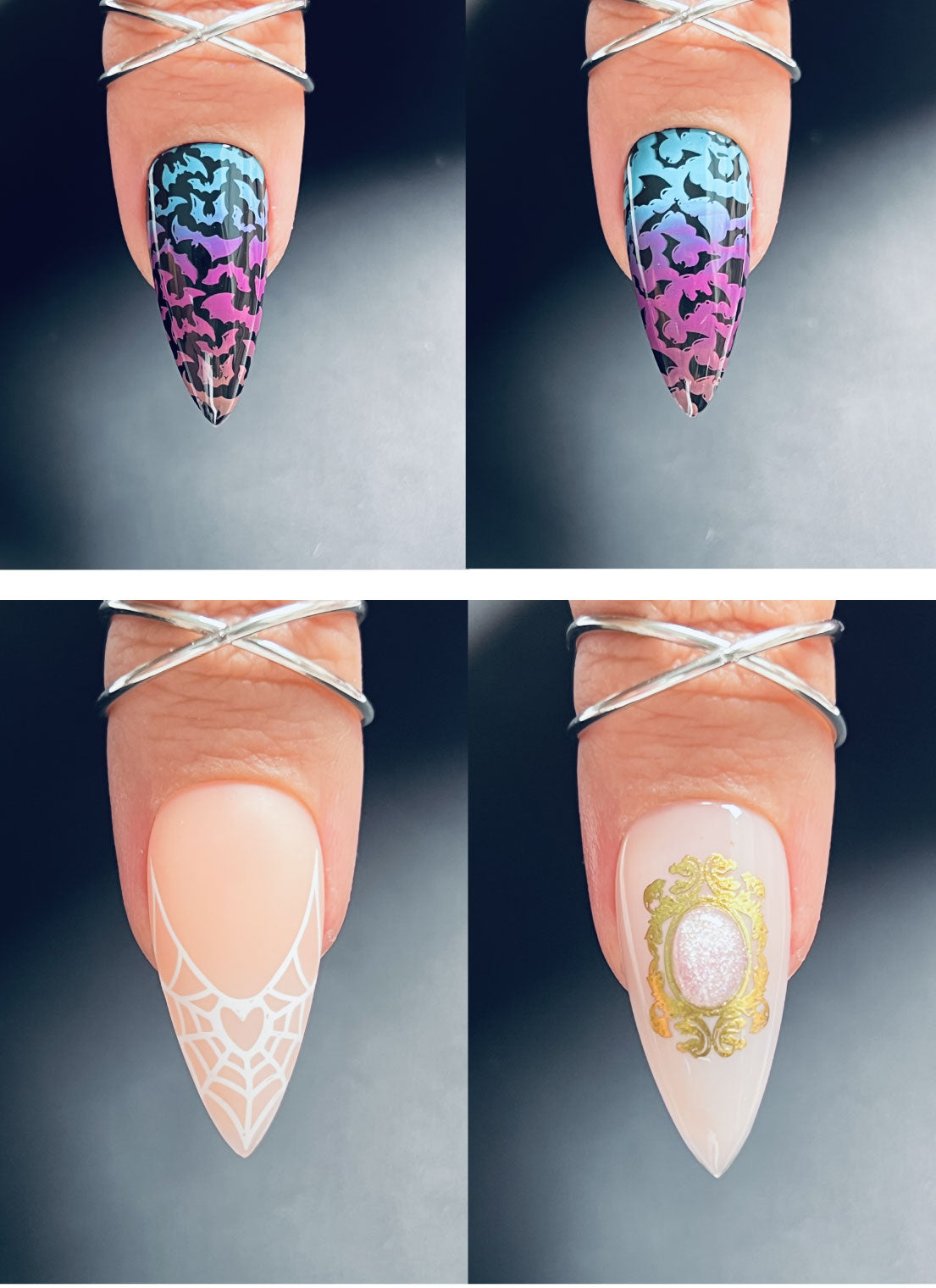 Our nail art designs can be applied using nail polish, a stamper, and a scraper. Visit our How-To Pages to watch and learn how to stamp.