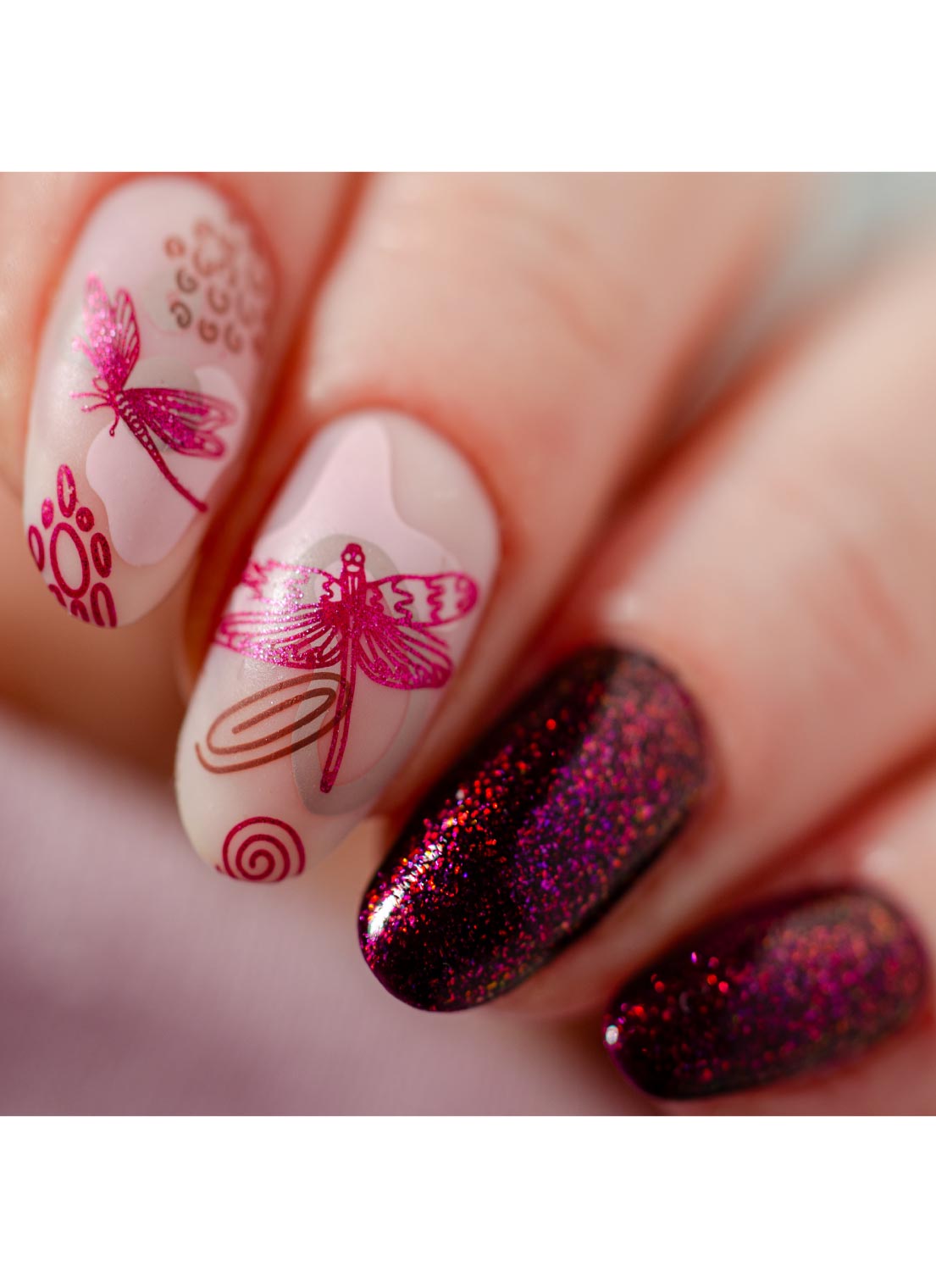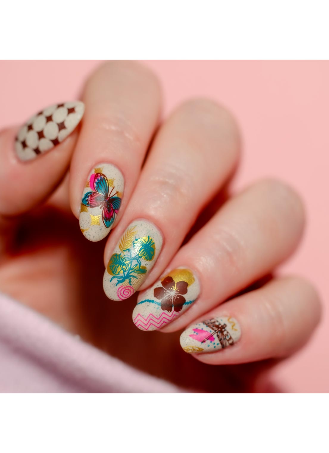 Our nail art designs can be applied using nail polish, a stamper, and a scraper. Visit our How-To Pages to watch and learn how to stamp.
