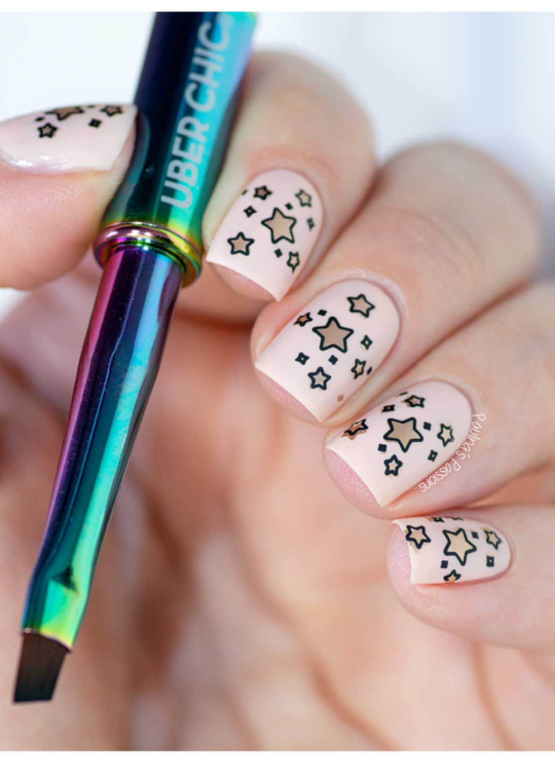 UberChic Beauty Brushes are high quality, professional-grade brushes designed specifically for all your nail art needs! These nail art brushes have a lovely, perfectly balanced weight to them without being too hefty. The bristles are cruelty-free, non-animal hair. They are 100% acrylic (synthetic) hair.