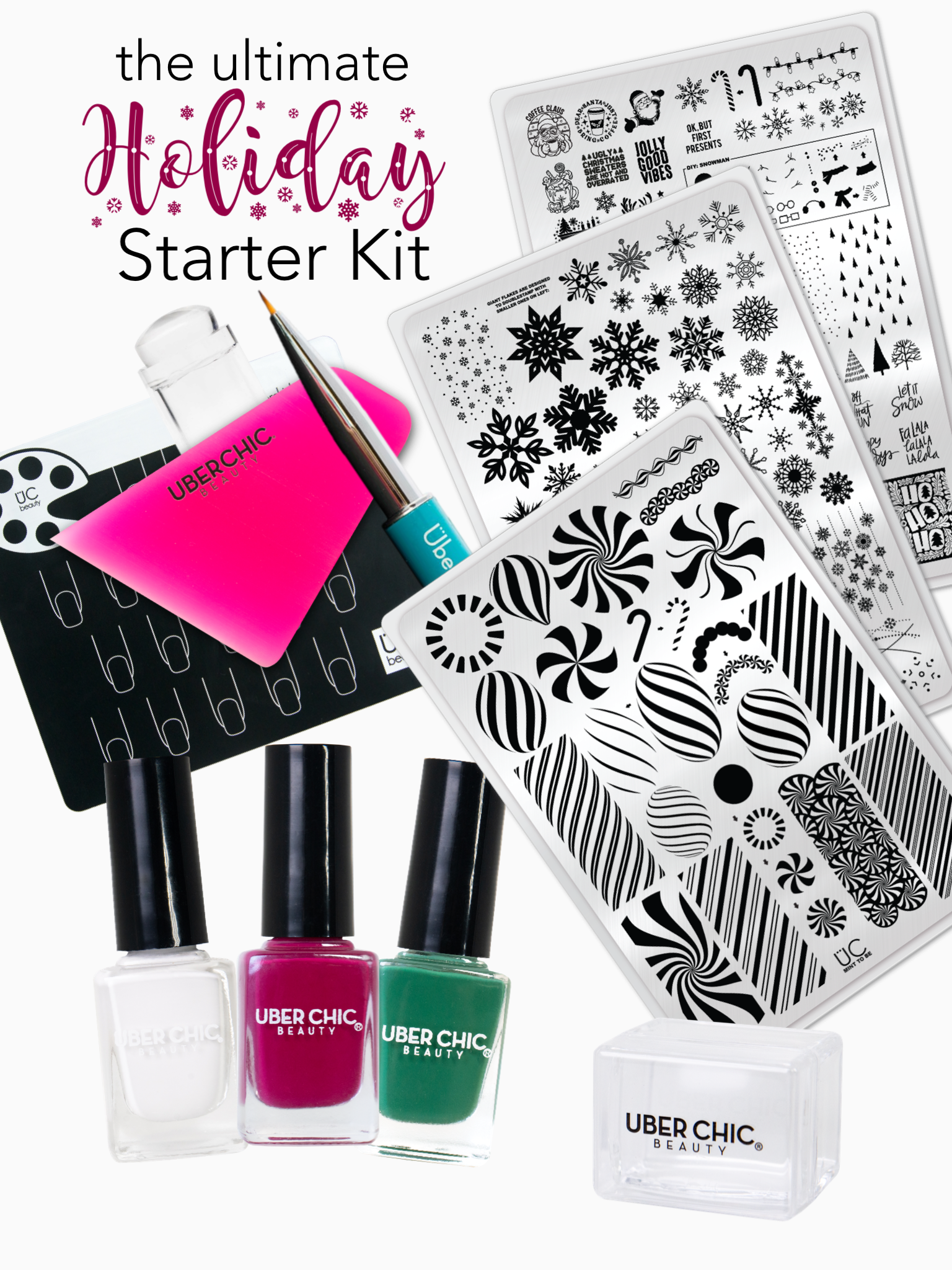 Everything you need to kick start your holiday nail art and more! Our brand new holiday starter kit features items handpicked by @InsatiableNails herself and includes the new popular holiday plates she helped design! Grab this bundle to start creating one-of-a-kind nail art in seconds!